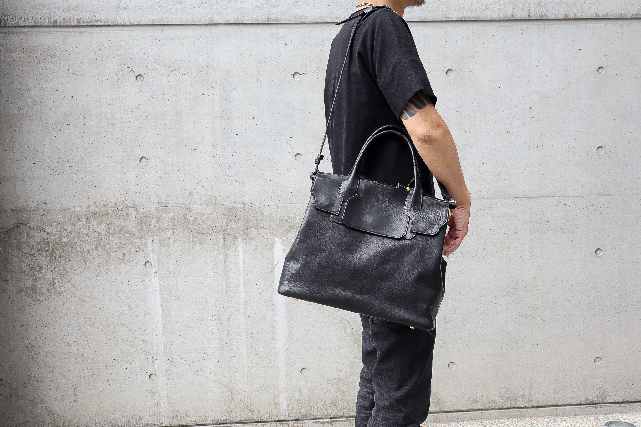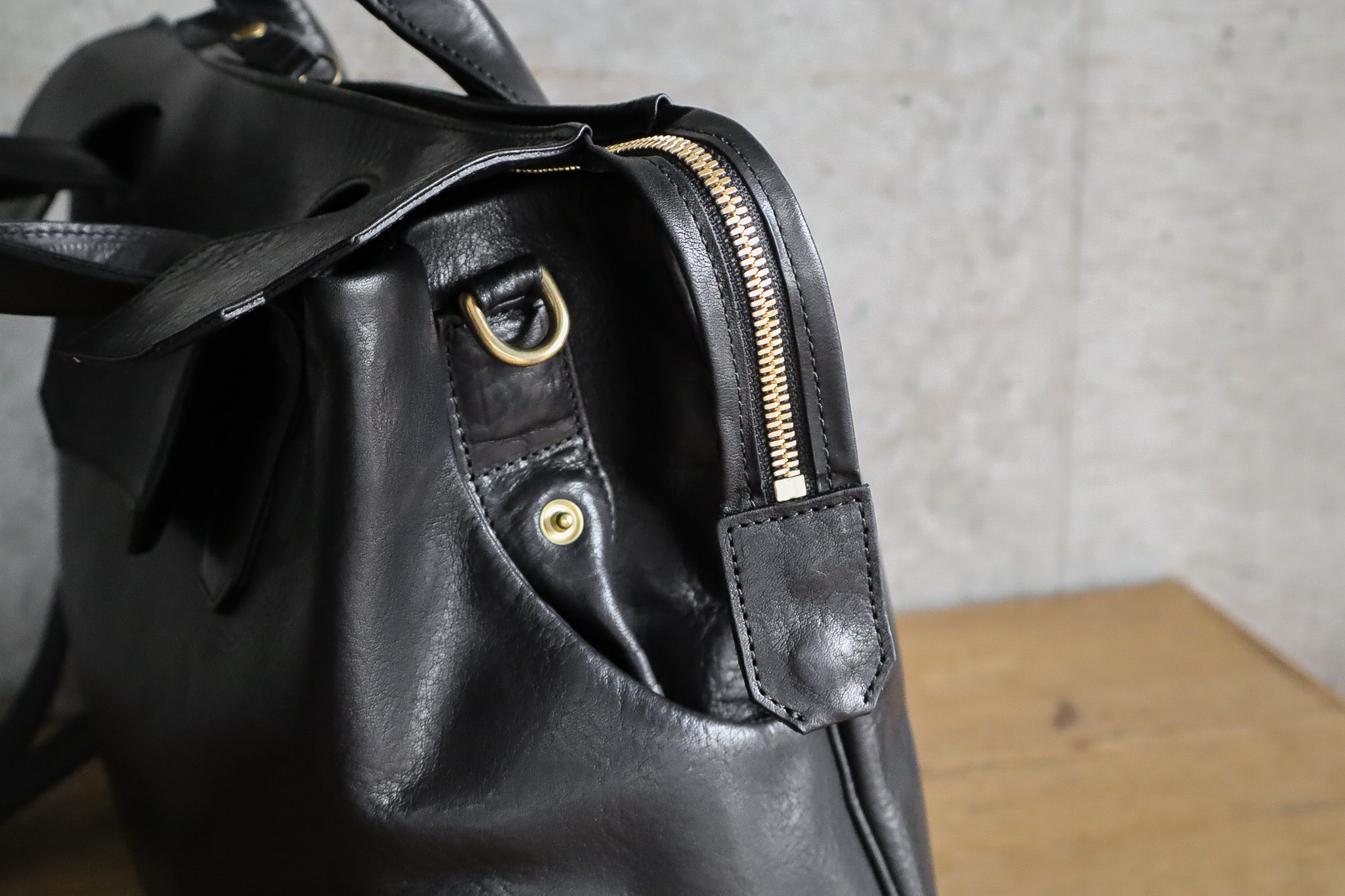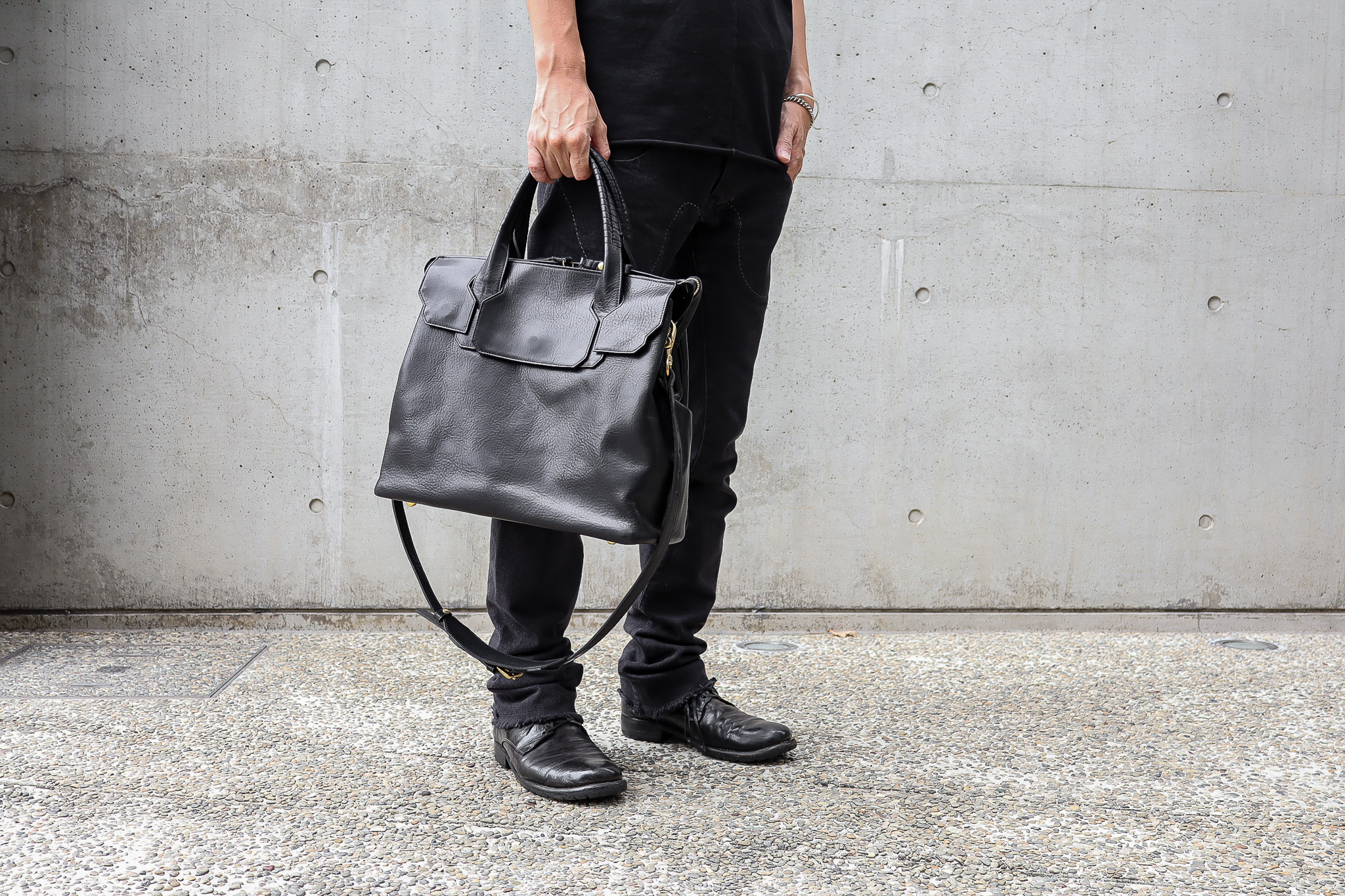 革の保護、ステッチの強化、防水性への配慮などを経て生まれたテクニックは、コバの張り出しが目立ち、ステッチは意匠的にも映ります。