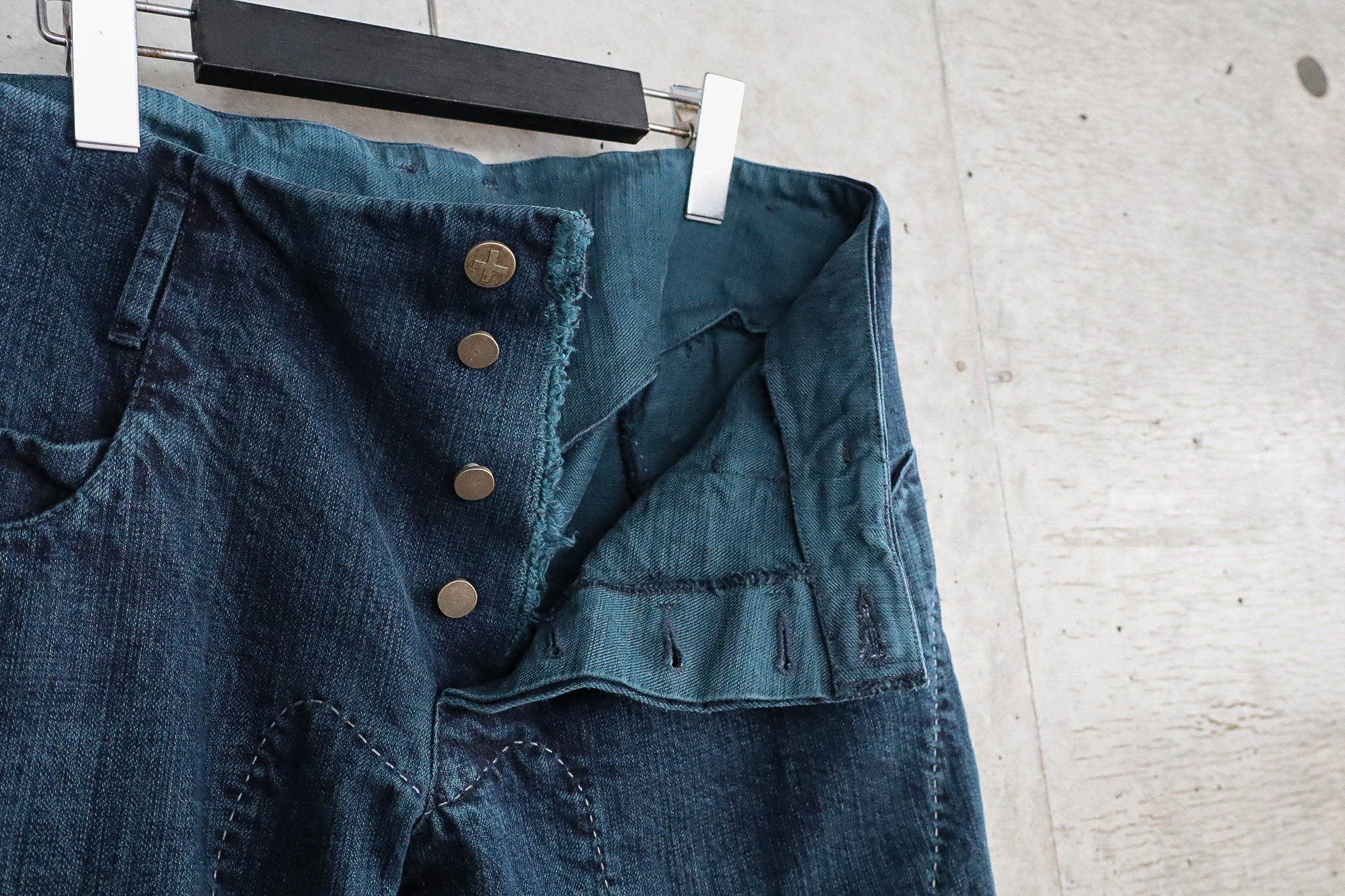ウエストは広めに設けて股上は浅め。ヒップと太もも周りで合わせていただく独自のフィットになっています。